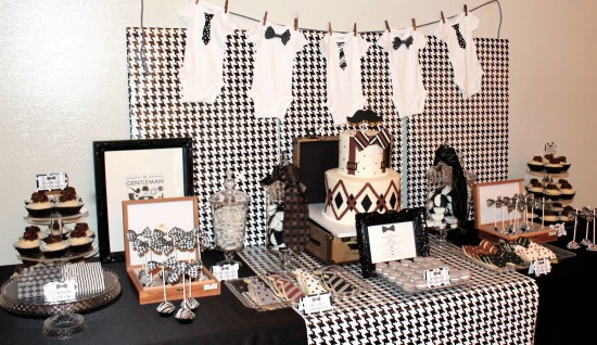 Sweet Soirees brought a sweet and sophisticated look to this Little Gentleman Baby Shower, using black, red and white as