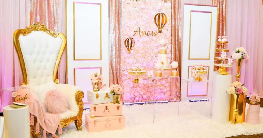 Beautiful Pink and Gold Baby Shower by Aura Decorations: This exquisite hot air balloon themed baby shower was planned by Aura