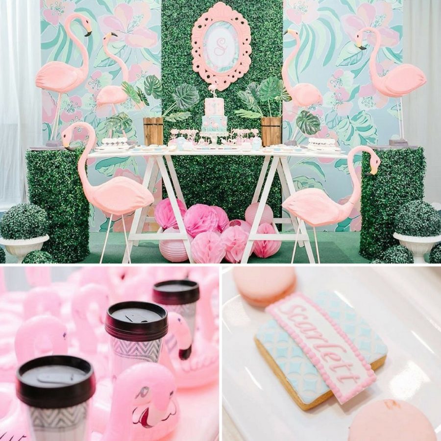 This tropical pink flamingo party was thoughtfully styled by Party Express. Pink flamingos were everywhere, making this party picture perfect for