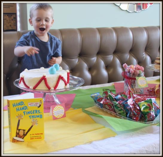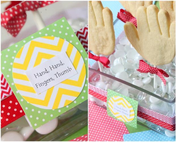 A fun “Hand, Hand, Fingers Thumb” Book inspired party by Kelsey of Itsy Bitsy Foodies.