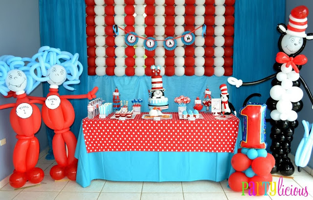 Carol of Partylicious styled an amazing Dr. Seuss party theme that focused on the Cat and Things. With an eye for design, Carol combined a fantastic mix of colors and detailing, this party was a one of a kind event.