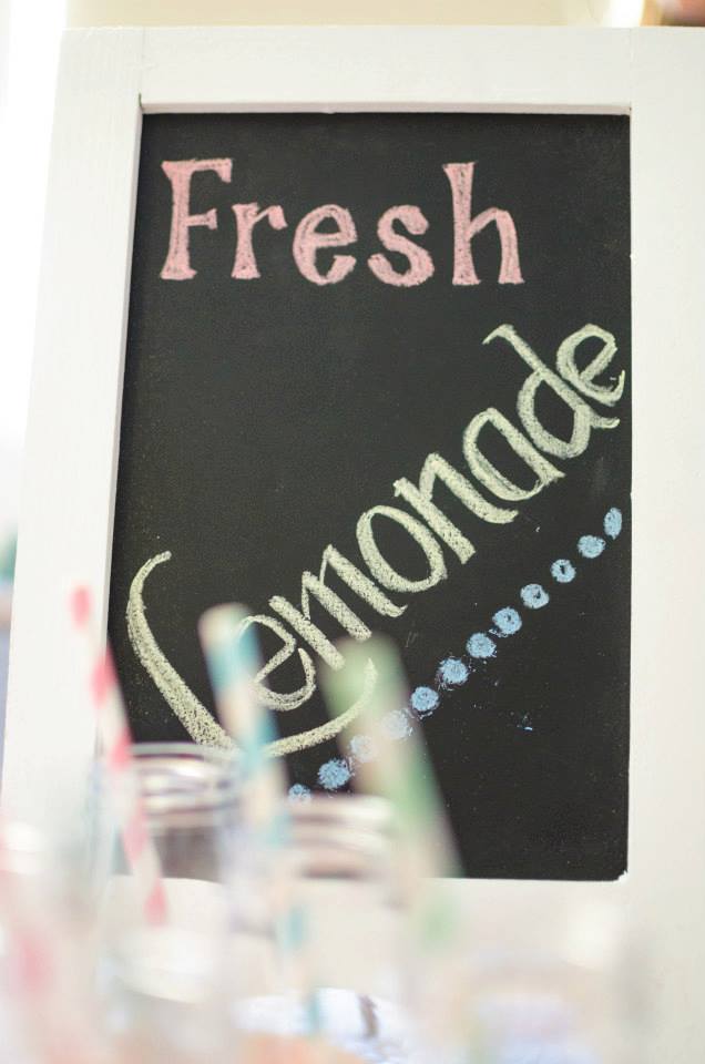White wooden chalkboard, pink patterned wooden spoons, white portion cups from Bon Bon Boutique