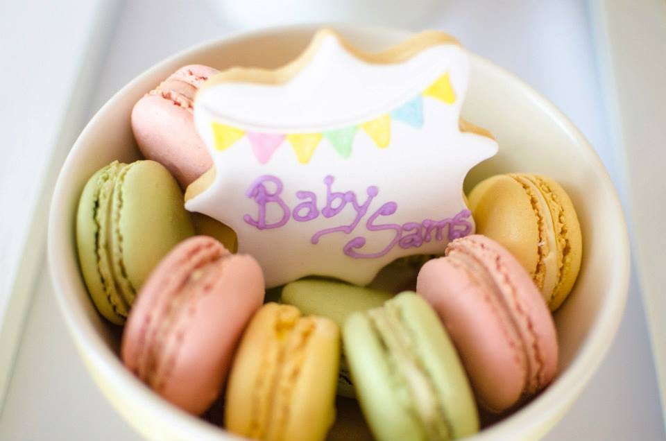 The treats are a really very cute and creative. Pastel fairy floss in apothecary jars are so pretty! The little baby carriage frosted cookie on top of the purple pastel cupcake is also a very lovely touch. The colors and the theme are really pronounced. Sweet Baby Sam’s fondant covered baby cake is such a nice touch. I think the pastel colored chocolate covered Oreos are the best because they really are inventive and dramatically designed. The intricate details on each cookie wont go unnoticed because of the label and the simple tray where they are displayed.