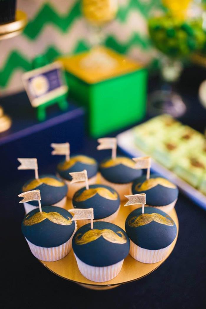Printables, chocolate mousse, mint cheesecake, gold moustache cupcake toppers –Sugar Coated Mama
