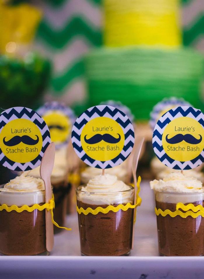 Printables, chocolate mousse, mint cheesecake, gold moustache cupcake toppers –Sugar Coated Mama