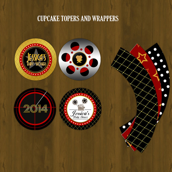 Hollywood Red Carpet Printable cupcake Toppers and wrappers
