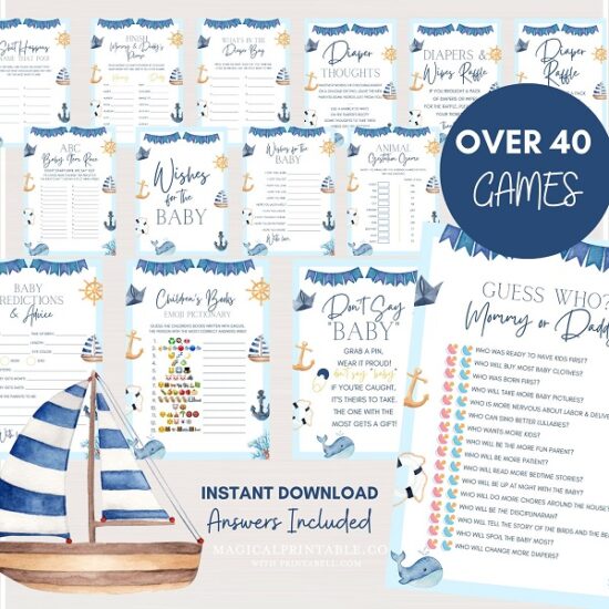 Printable games are also your other option. You may print them yourself if that works out to be a better option. It is certainly a faster option if you are running out of time! Search for ‘instant download’ printable. You can find plenty of Ahoy / Nautical themed baby shower games online.