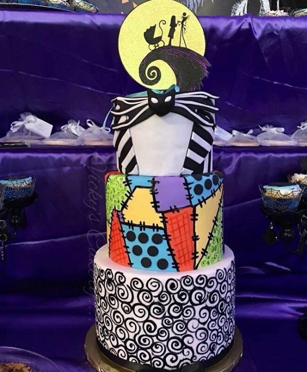 Hang paper lanterns or balloons shaped like Jack Skellington’s face from the ceiling, and drape black and white striped fabric as backdrops or table covers. You can also include themed elements like faux tombstones, skeletons, and eerie silhouettes of characters like Oogie Boogie or Zero. For an extra special touch, consider a life-size cutout of Jack and Sally for guests to take photos with, or create a backdrop that mimics the Spiral Hill scene from the movie.