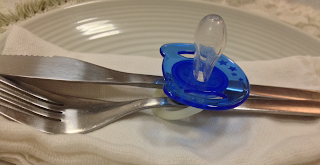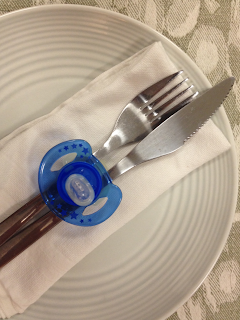 Pacifier Cutlery Holder If you are having a Pacifier Baby Shower Theme this would be a perfect way to decorate your plate~ Actually, no matter what the theme is, it will be perfect! Use blue pacifier for baby boy, pink for a girl, yellow or orange or purple for neutral. You may also like :Mustache Or Eyelash Baby Shower Gender RevealWhimsical Geometric Baby ShowerWinter Wonderland Baby ShowerBreakfast at Tiffany’s Baby Shower Tea PartyFloral Backyard Baby Shower