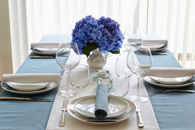 | Blue White Hydrangea Table Setting |