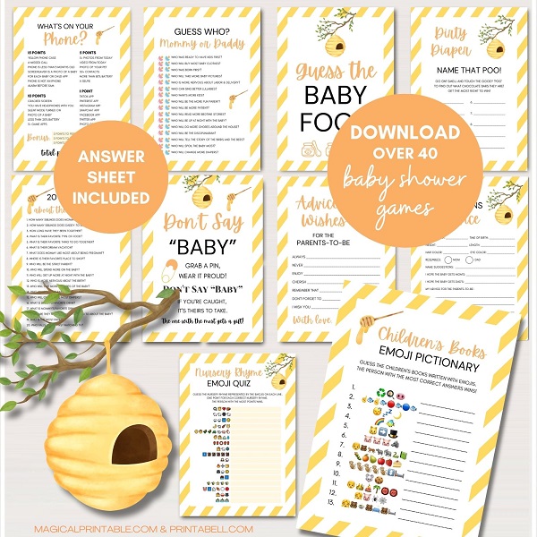 A popular baby shower game that starts with the letter B is Baby Food Guessing Game. With this guessing game, jars of baby food without labels are used, and guests can only look at the contents of each jar and then write down their best guess. The guest that gets the most right answers wins, and the prize can be a small jar of honey or other bee related prize.